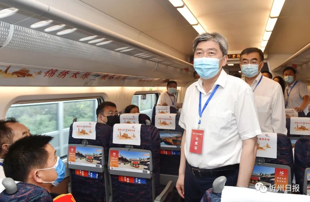 仪式结束后,朱晓东、李建国等一行共同乘坐以“锦绣太原·康养忻州”为主题包装打造、冠名“太忻号”的