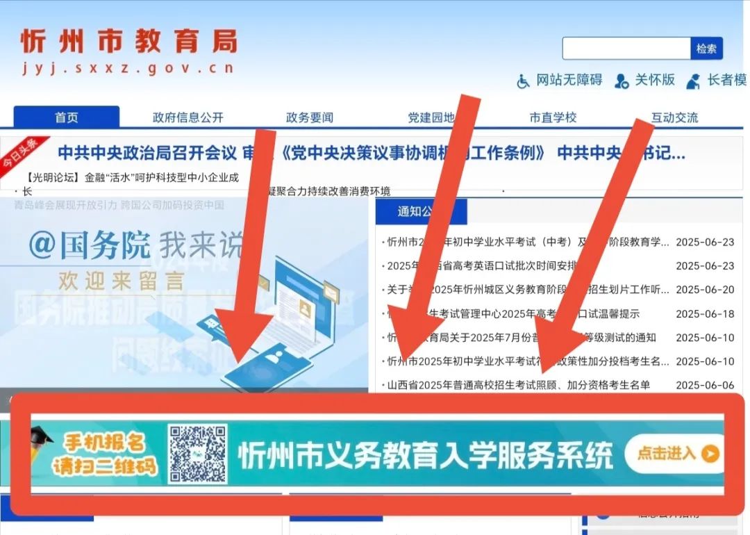 城区义务教育阶段公办和民办学校全部实行网上报名。通过忻州市教育局网站窗口或手机扫描二维码,登录忻州市义务教育入学服务系统,填报适龄生个人信息,并上传相关资料照片。