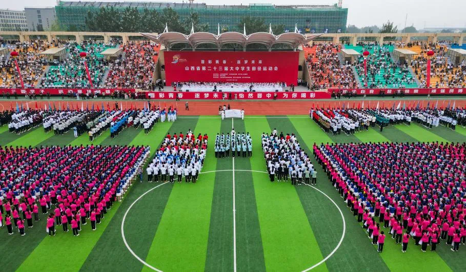 ▲山西省第二十三届大中学生田径运动会开幕式现场(来源:山西省教育厅)